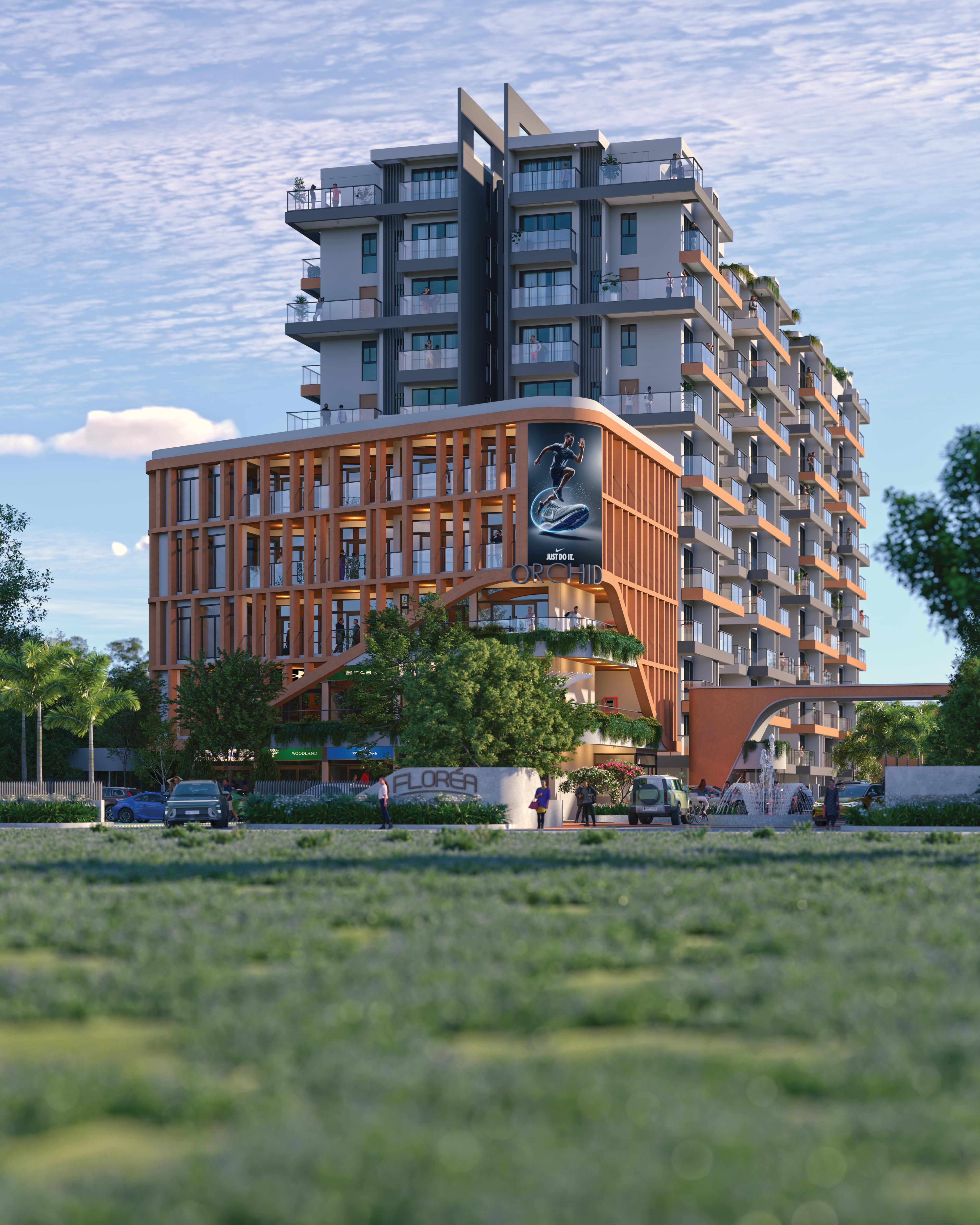 Modern commercial space with 24 shops, offering prime visibility, parking, and 24/7 security. Ideal for retail and offices.