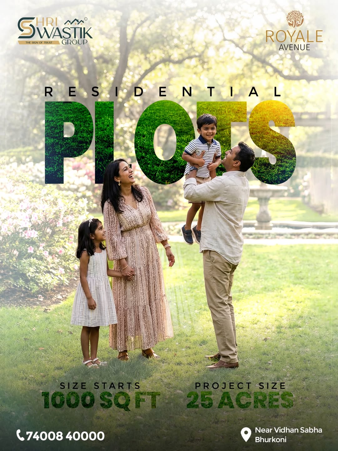 Shri Swastik Royale Avenue is a flagship residential gated community by the renowned Shri Swastik Group. Spanning over 25.2 acres of lush greenery in the rapidly developing Bhurkoni area (near Vidhan Sabha Road), Raipur, this project is designed to offer a "majestic lifestyle" that blends modern luxury with nature. Whether you are looking for residential plots (ranging from 600 to 2000 sq. ft.) or elegant 2 BHK villas, Royale Avenue provides a secure and premium environment for families to thrive.